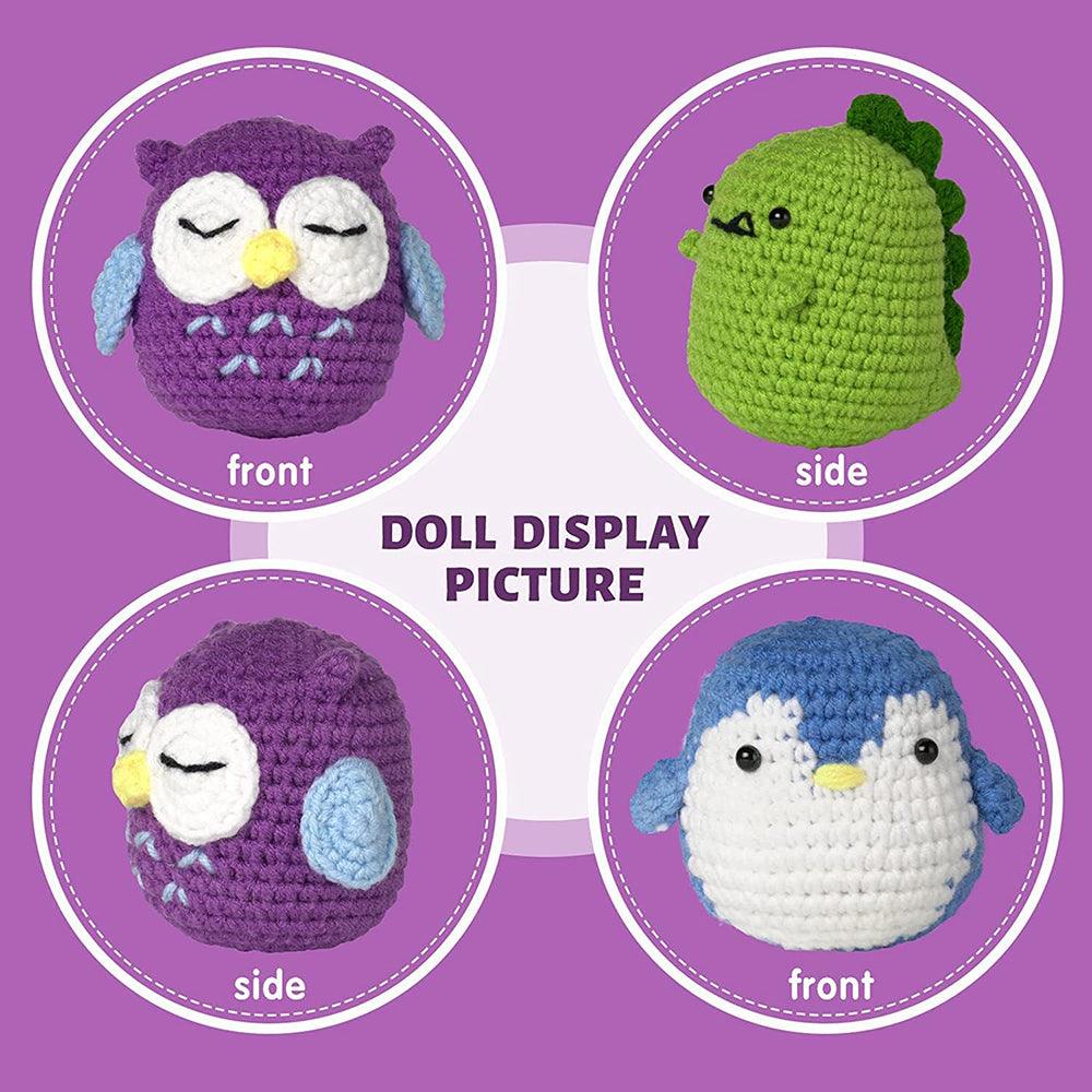 Hicrochet Kit For Beginners 3 Pattern Animals Owl Penguin Frog Kni
